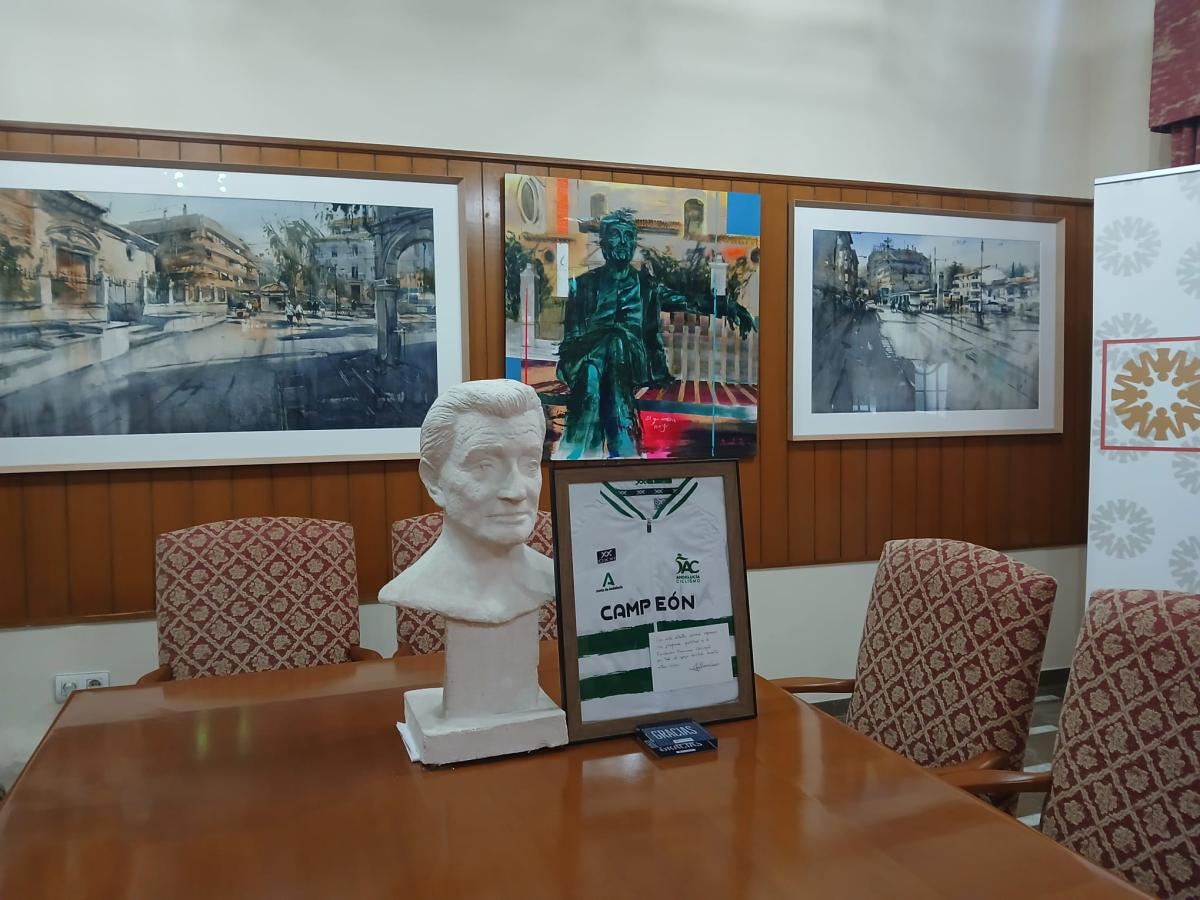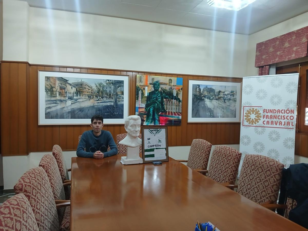 Juan Carlos Ramírez ciclista alboloteño visita la Fundación y hace entrega de su mallot de Campeón de Andalucía de ciclismo en ruta 2025, en agradecimiento por el apoyo económico recibido durante años de la Fundación "Francisco Carvajal" de Albolote.